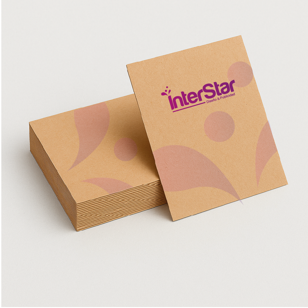En Interstar, diseñamos e imprimimos tarjetas de presentación personalizadas que transmiten la esencia de tu marca. Contamos con opciones en papeles couché, y otros, con acabados premium como laminado mate o brillante, entre otros.